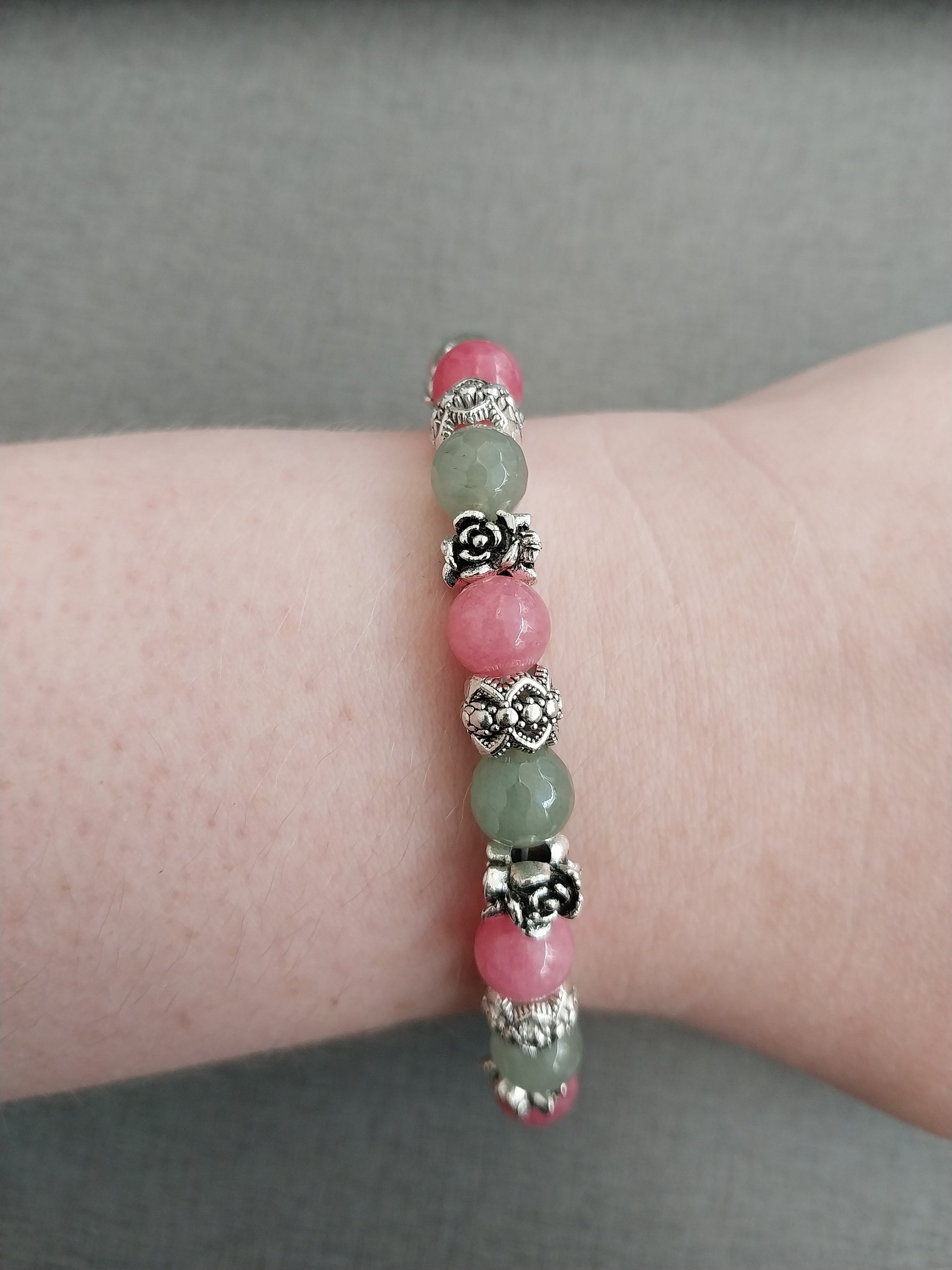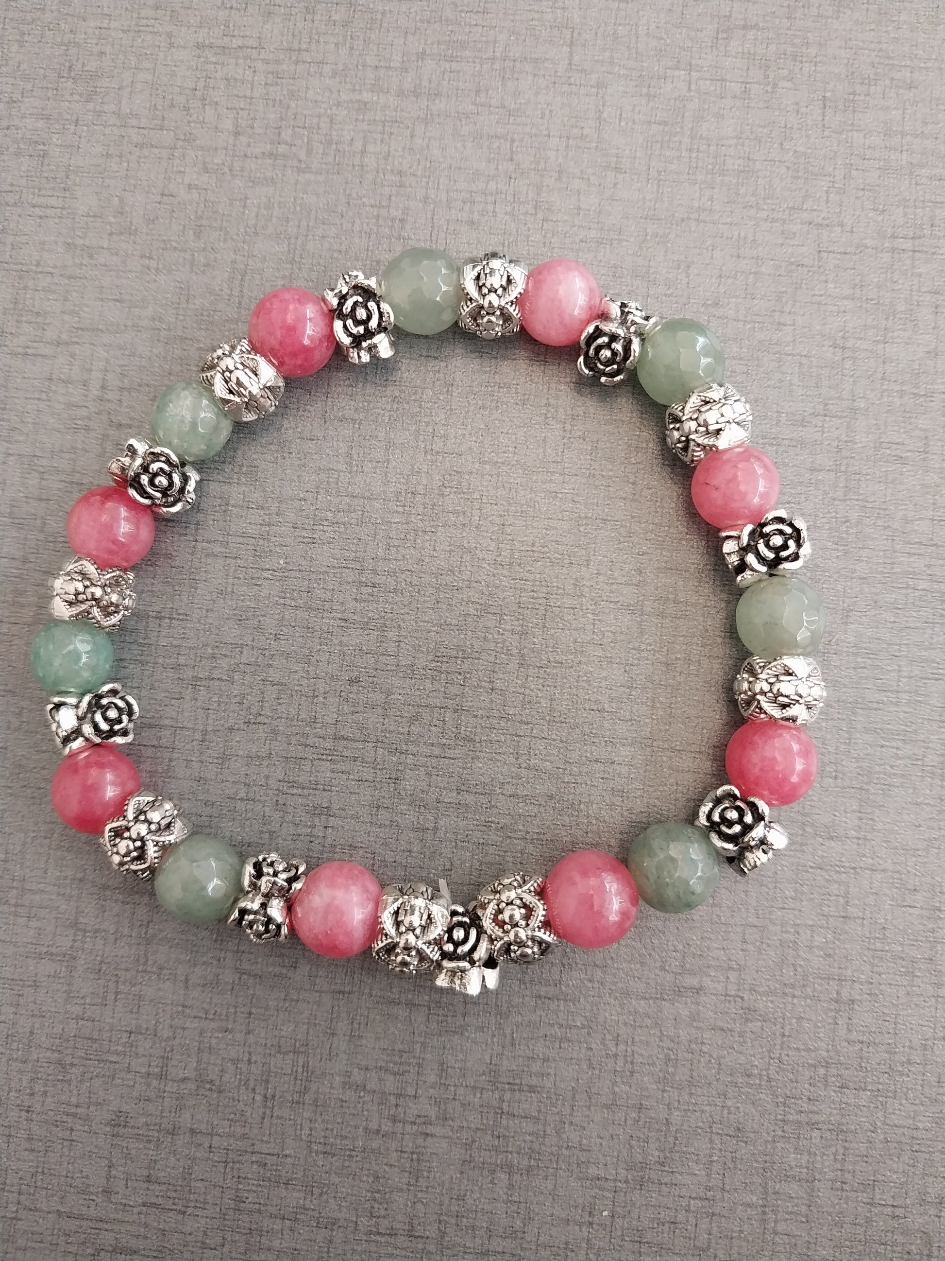 Silver floral accents bloom between each bead like sacred pauses—reminders that healing is not linear, but beautifully cyclical. This bracelet is for the woman who roots herself in grace, rises with love, and walks forward with open-hearted strength.