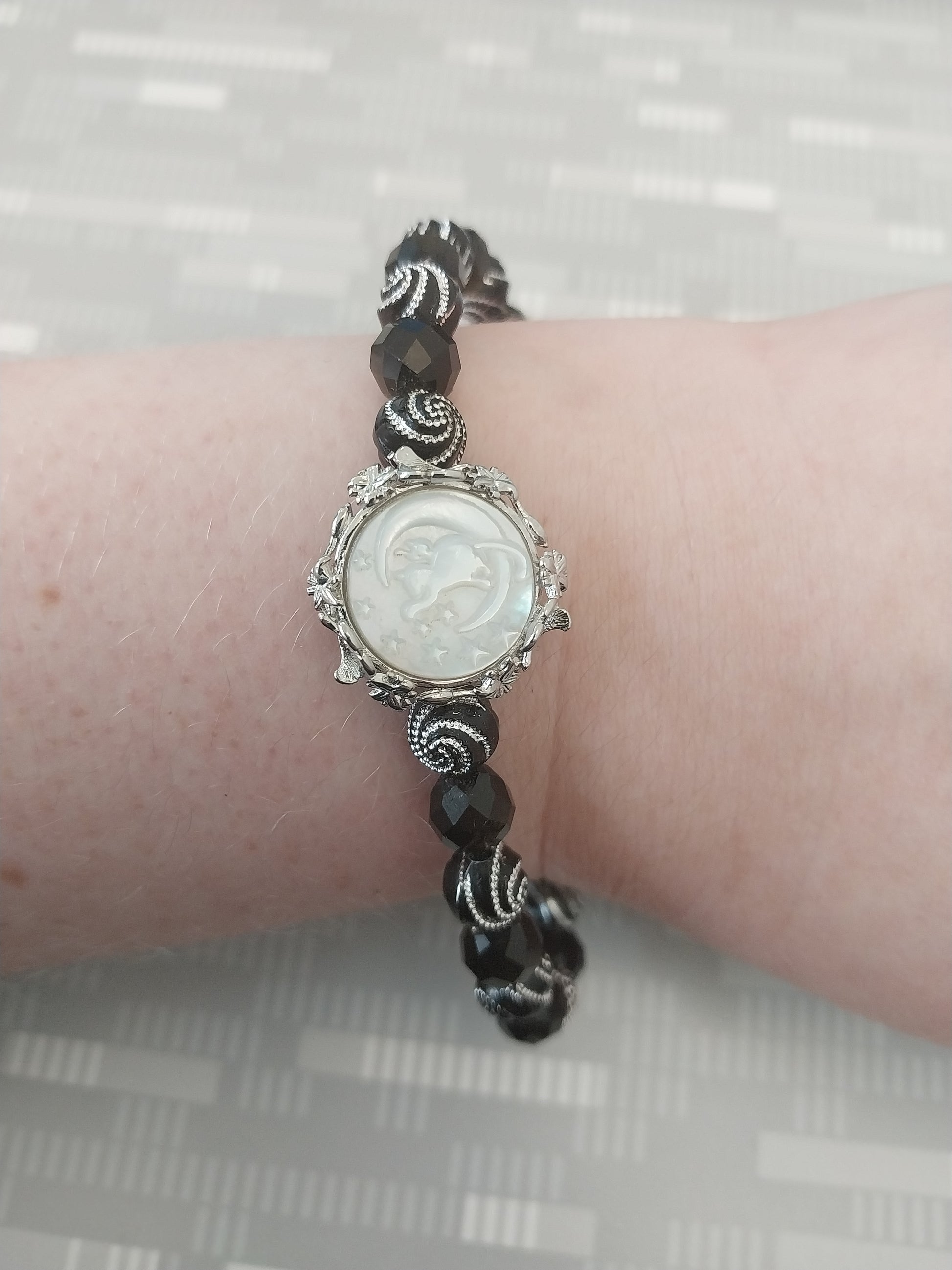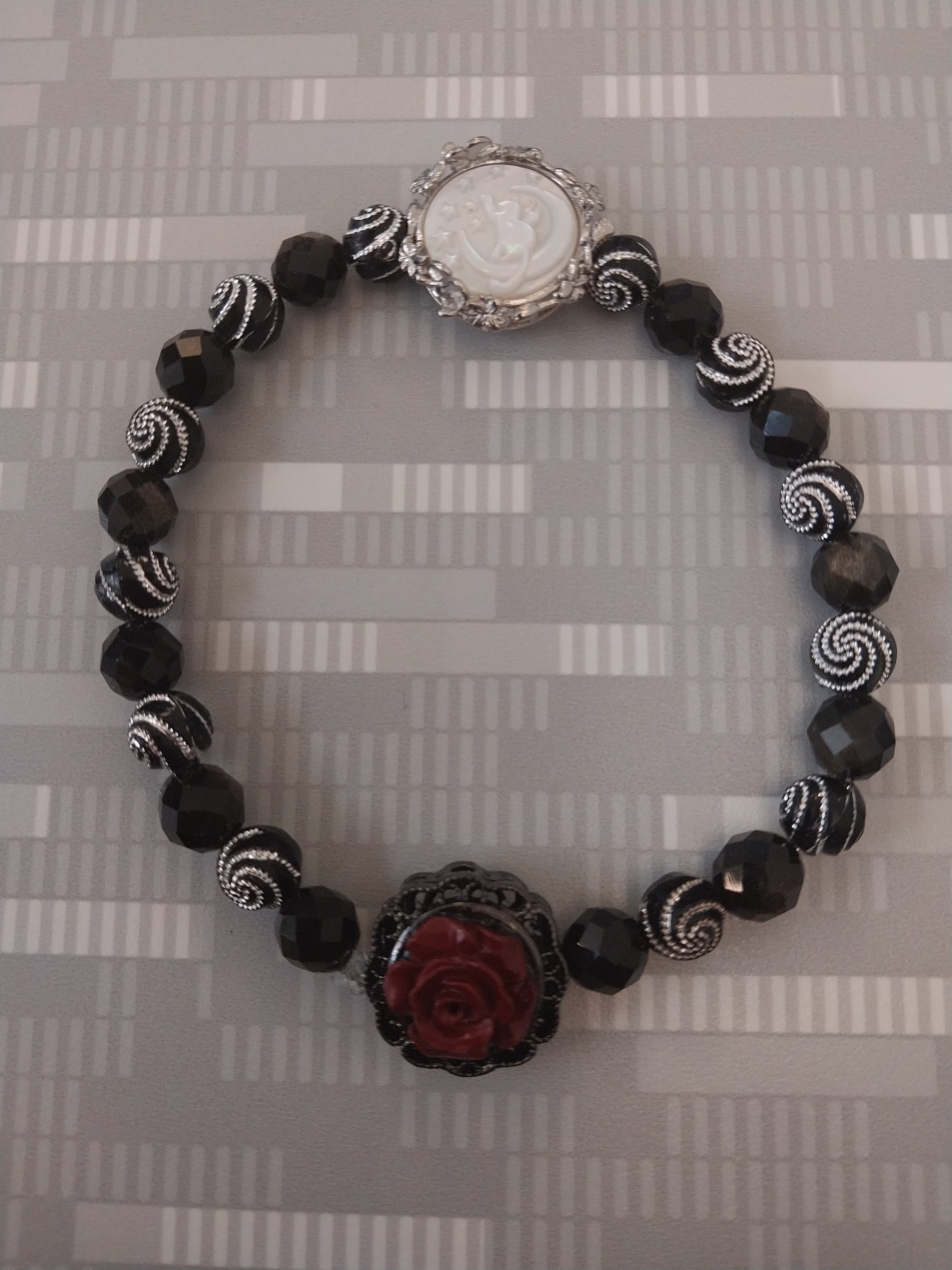 Midnight Bloom is a bracelet for the mystic heart—where shadow meets shimmer and dreams dare to bloom in the dark. Faceted golden sheen obsidian beads reflect inner light, offering protection and truth in times of transformation. Black-and-white spiral beads swirl like galaxies, guiding you inward to your own sacred rhythm.